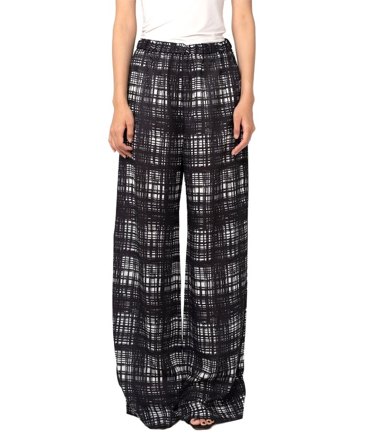 Random Check Printed Gather Pants