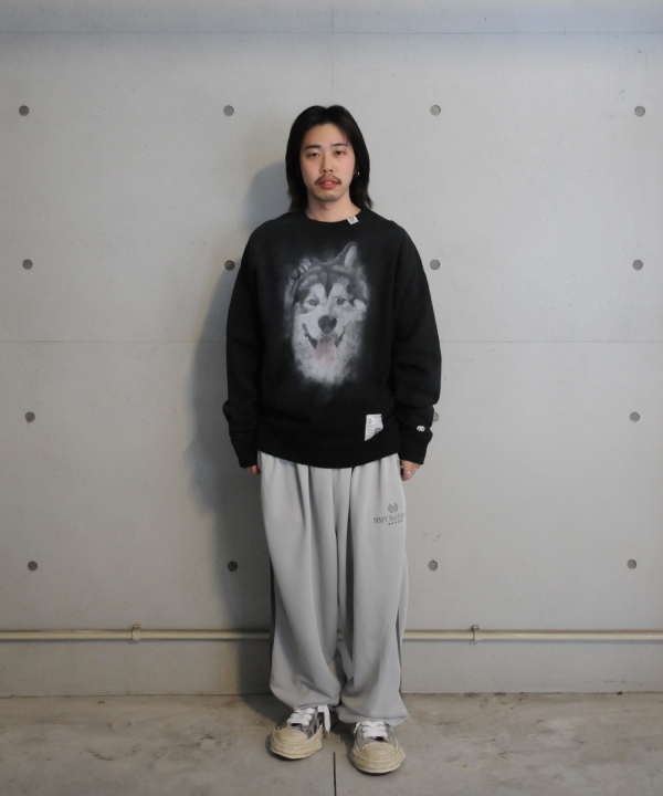 ディストレスト ドッグプリントスエットシャツ