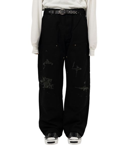 全体に穴あきやダメージ加工を施したディストレストカーディガン。